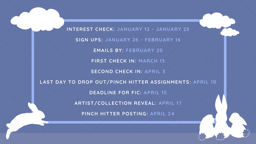 Writers will be expected to complete a fic of 2k words, and artists will be expected to complete a piece of at least lineart.